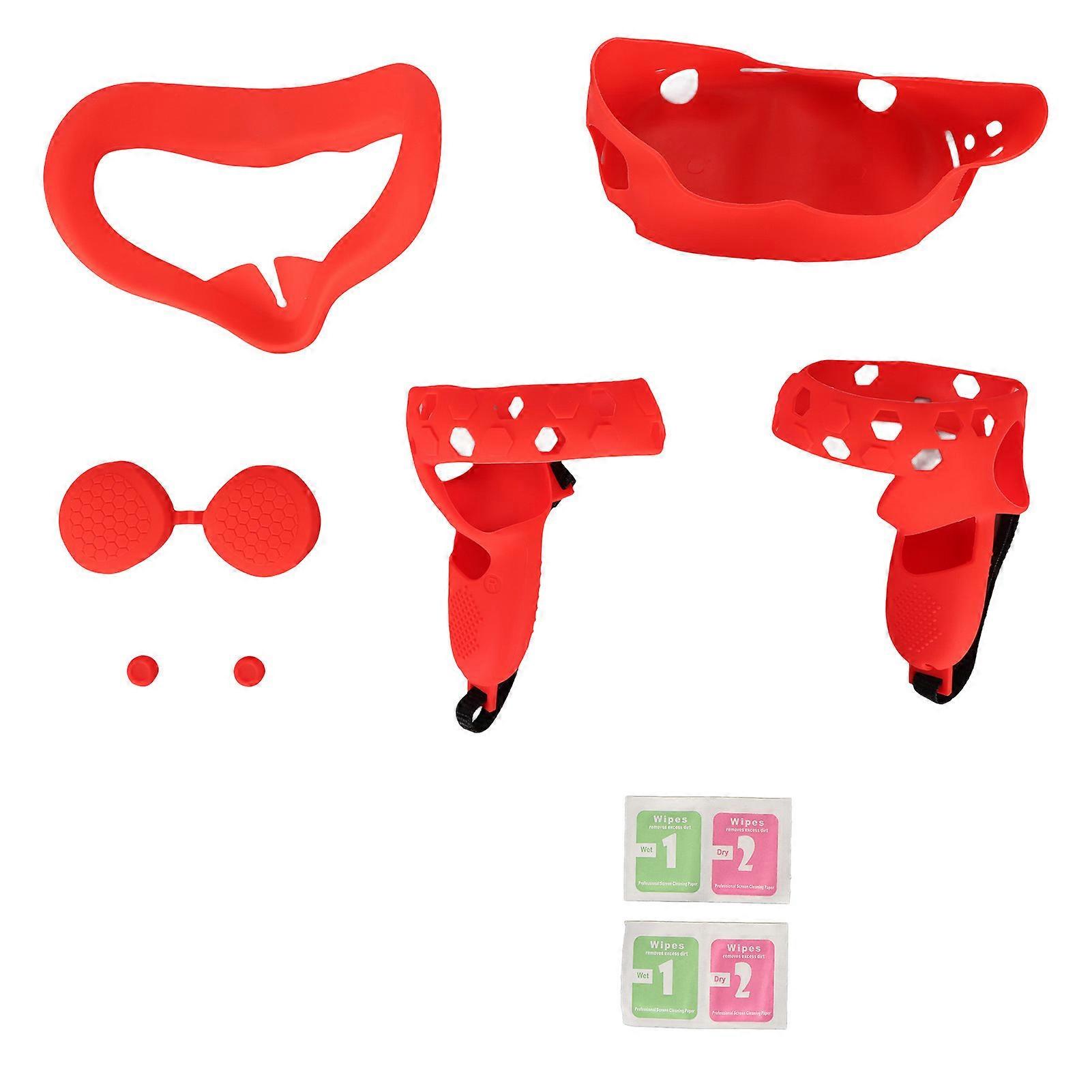 5 in 1 Silicone Cover Set for Quest 2 Includes Face Cover Controller Grip Cover VR Shell Cover Dust Cover Shakes Stick Caps Red
