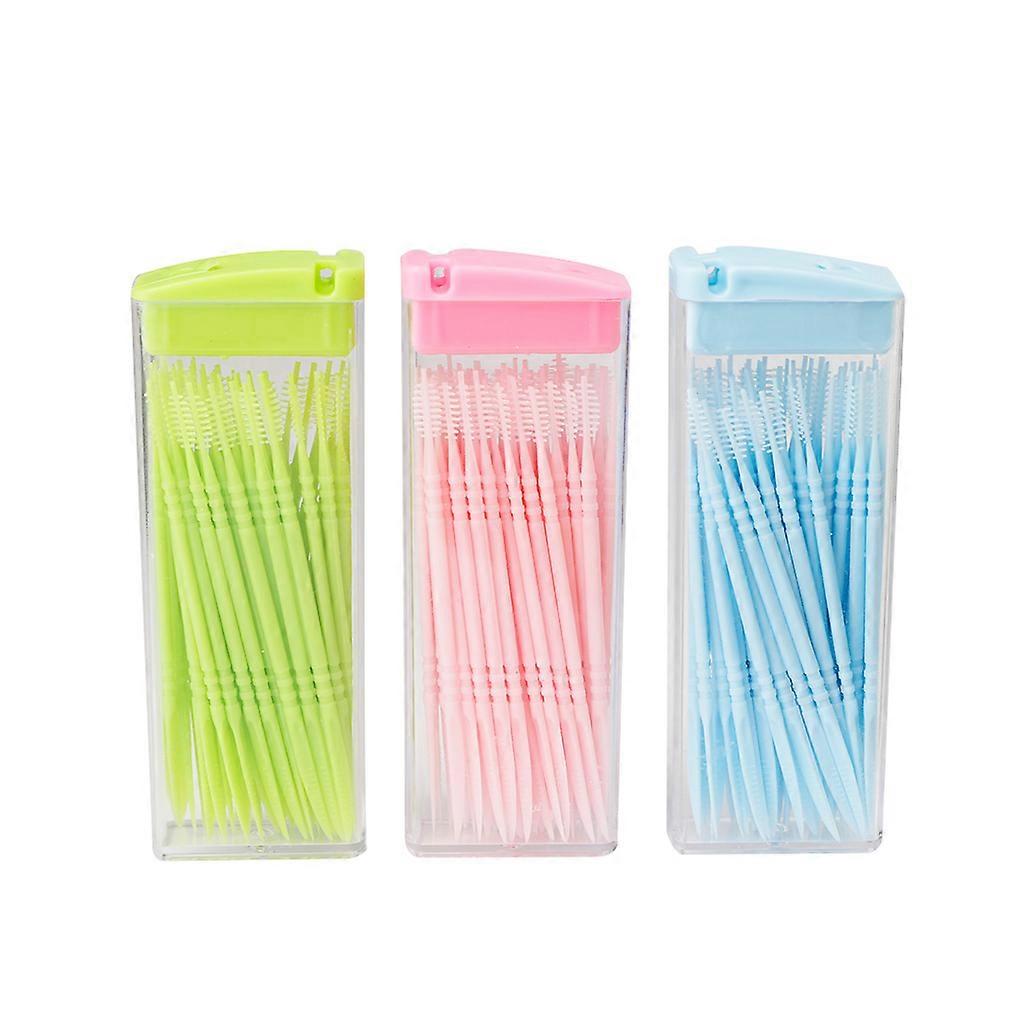 50 pcs / box Double-headed Dental Brush Teeth Sticks Floss Pick Toothpick