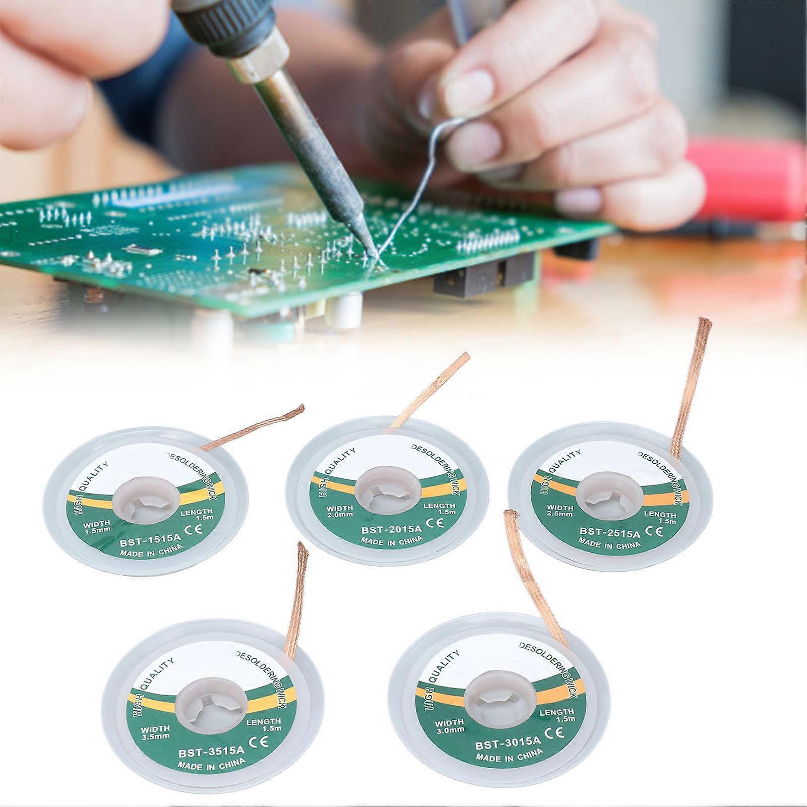 5Pcs Solder Wick Braid Set Alloy Copper 1.5-3.5mm Width 1.5m
