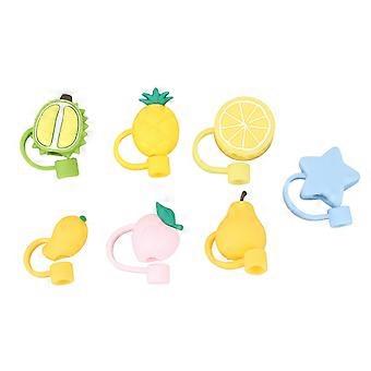 7pcs Silicone Straw Tips Cover Reusable Drinking Straw Cover Soft Straw Plugs for 6 to 8 mm Straws Mixed Straw Covers Cap Color Fruit Set