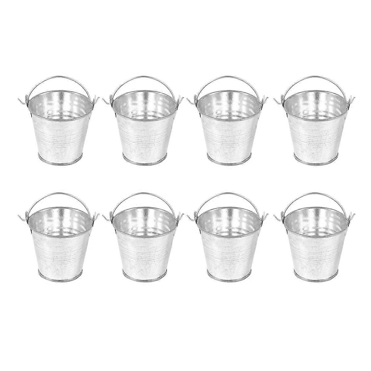 8pcs 8pcs Miniature Tinplate Bucket Small Flower Bucket Tinplate Flower Bucket Mini Plants Bucket for Home (Silver)