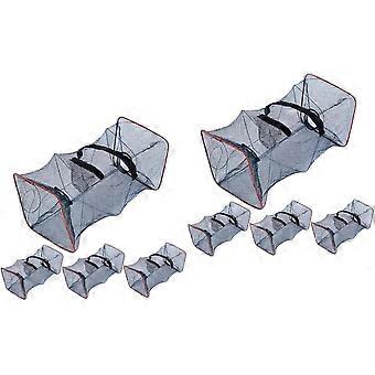 8 Stück tragbare Nylon feinmaschige faltbare Fischernetzfallen, Fischnetz Garnelengitter Krabbenkäfig, Elritzen Fisch Netz Sommerköder für blaue Krabben