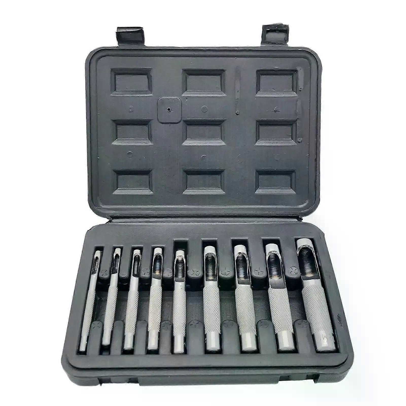 9Pcs Leather Punch Set Leather Punch Tool 3-12mm DIY Leathercraft Tool with Leather Kidney Toolbox