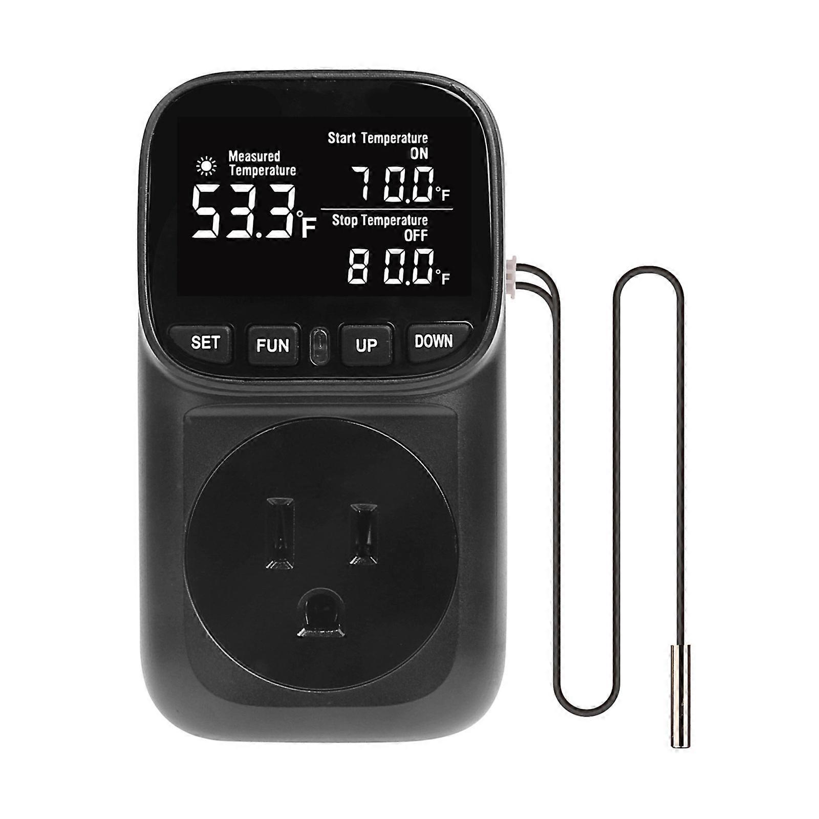 Features: This digital thermostat socket offers five distinct modes, allowing users to tailors their heating and cooling preferences to meet specific needs, providing great temperature management in various environment. Designs for ease of use, this thermostat socket features a straightforward setups, without complex installations or programming. With a control ranges of -40℃ to 120℃ and accuracy of ±1%, this device provide precise temperature regulation, making it suitable for diverse applications such as greenhouses, aquariums, and refrigeration. Users can set specific start and stop temperatures with this thermostat, enabling efficient control over heating and cooling equipment. Equipped with a temperature sensors, temperature calibration, and data memory function, this controllers retains all setting even after power loss. Specifications: Component: ABS Type: ℃/˚F Size: about 8.2x6.5x10.4cm/3.23x2.56x4.09inch Temperature display ranges: -40℃~120℃ Temperature display accuracy: 0.1℃ Accuracy: ±1% Timing Accuracy: maximums 1 minutes Maximums working current: 15A Local power consumption: <0.8W Package Includes: 1pc Digital Temperature controllers Socket note: Please allow 1-2cm errors due to manual measurement, make sure that you do not mind before you order. Due to difference between different monitors, the picture may not reflect the actual color.