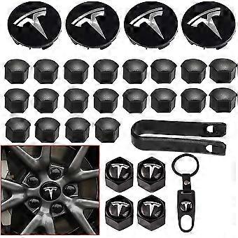 Aero Wheel Cap Kit, Rad Lug Mutter Abdeckungen Modell 3 Radkappe Kit mit Tesla Logo Nabe Mitte Abdeckung Mutter Abdeckung Kappen für Tesla Model 3 Model Y (schwarz)