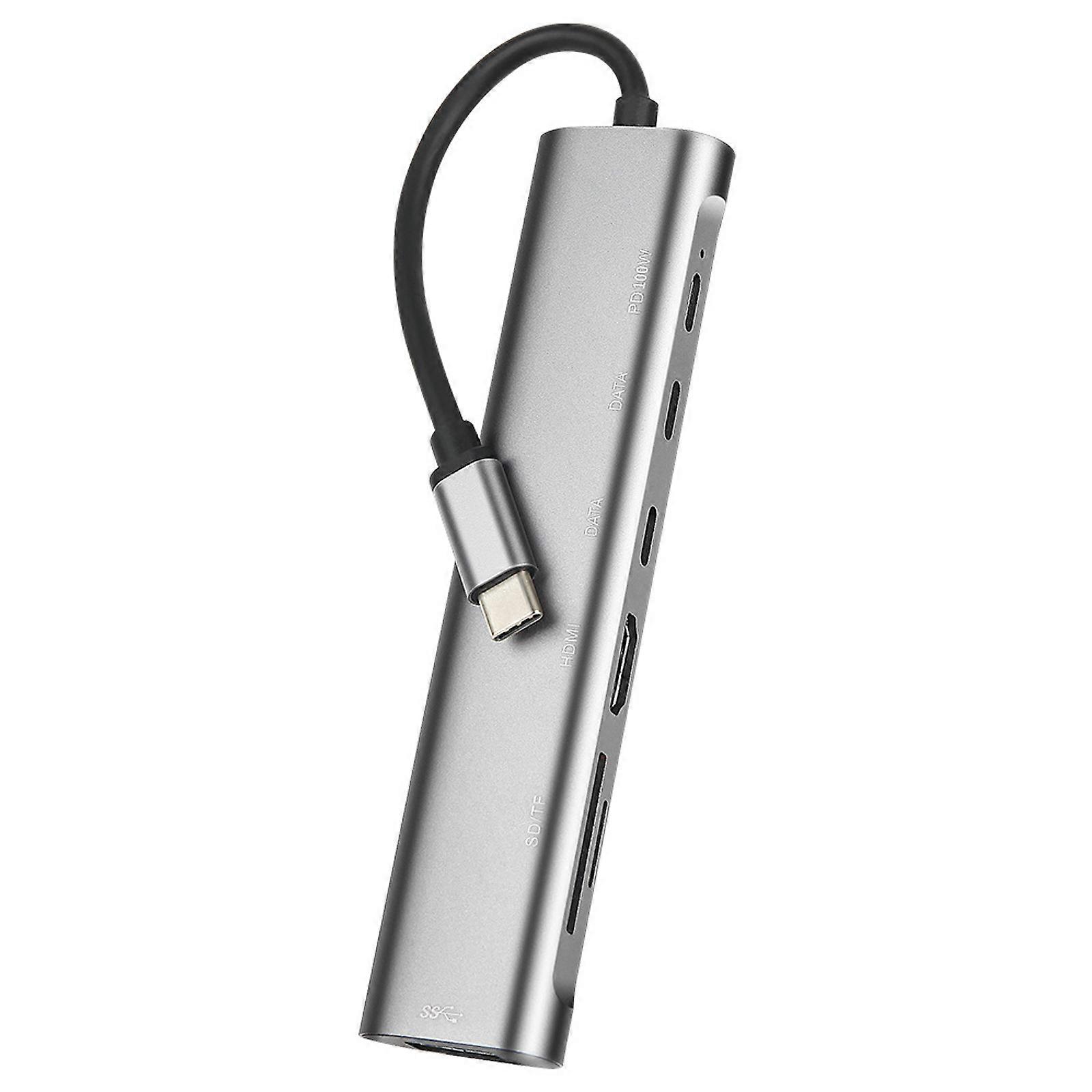 Aluminum 7 in 1 USB C Hub Type C Hub USB3.0, 2XCard Reader Port, Double Type C Ports, 100WPD Charging Input 7Ports
