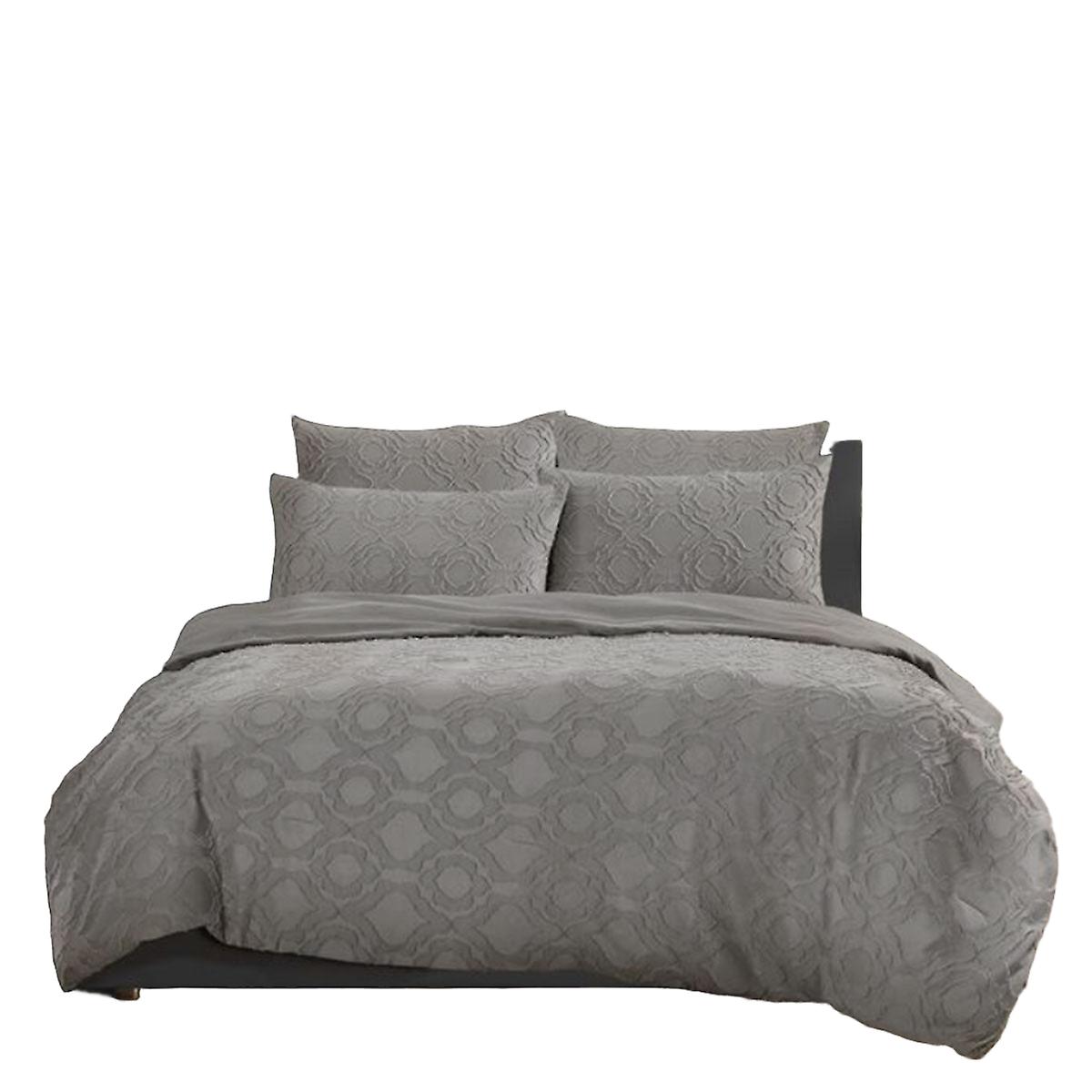 This 5 Pce Comforter Set Millicent Storm Grey By Ardor Is A Soothing Design That Will Create A Calming Vibe In Your Bedroom. Millicent's Storm Grey Front Displays A Tufted Pattern That Softly Gestures Inspiration Form Floral Tiles With A Plain Dyed Reverse. It Is Made From Quality Polyester Fabric With Approx 200Gsm Polyester Fill That Will Make You Warm And Comfy In Your Sleep.