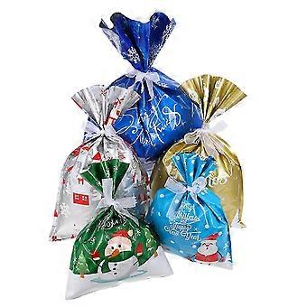 Assorted Color Party Treat Bags with Drawstring Closure and 5 Christmas Candy Pieces