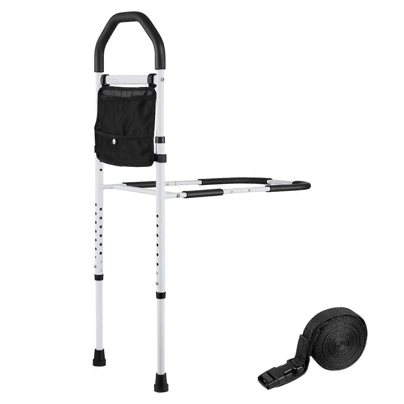 Bed Rail for Elderly, Assist Rails with Supporting Leg and PU Handrail, Adjustable Height Carbon Steel Pipe Bedside Cane