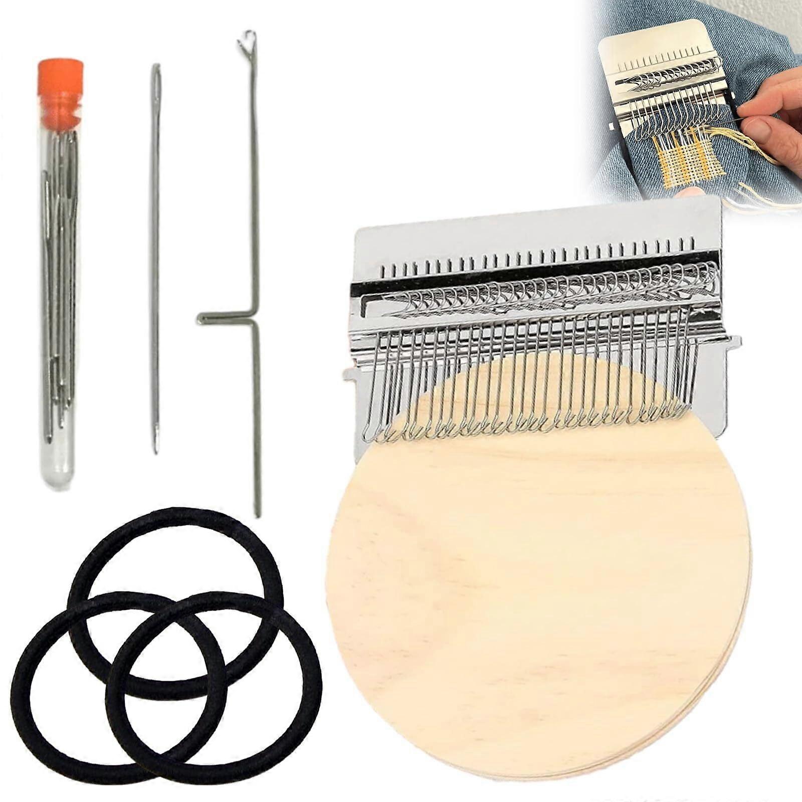 Beginner's Loom Knitting Kit, Mini Portable Darning & Patchwork Weaving Tool Set for Quick Repairs