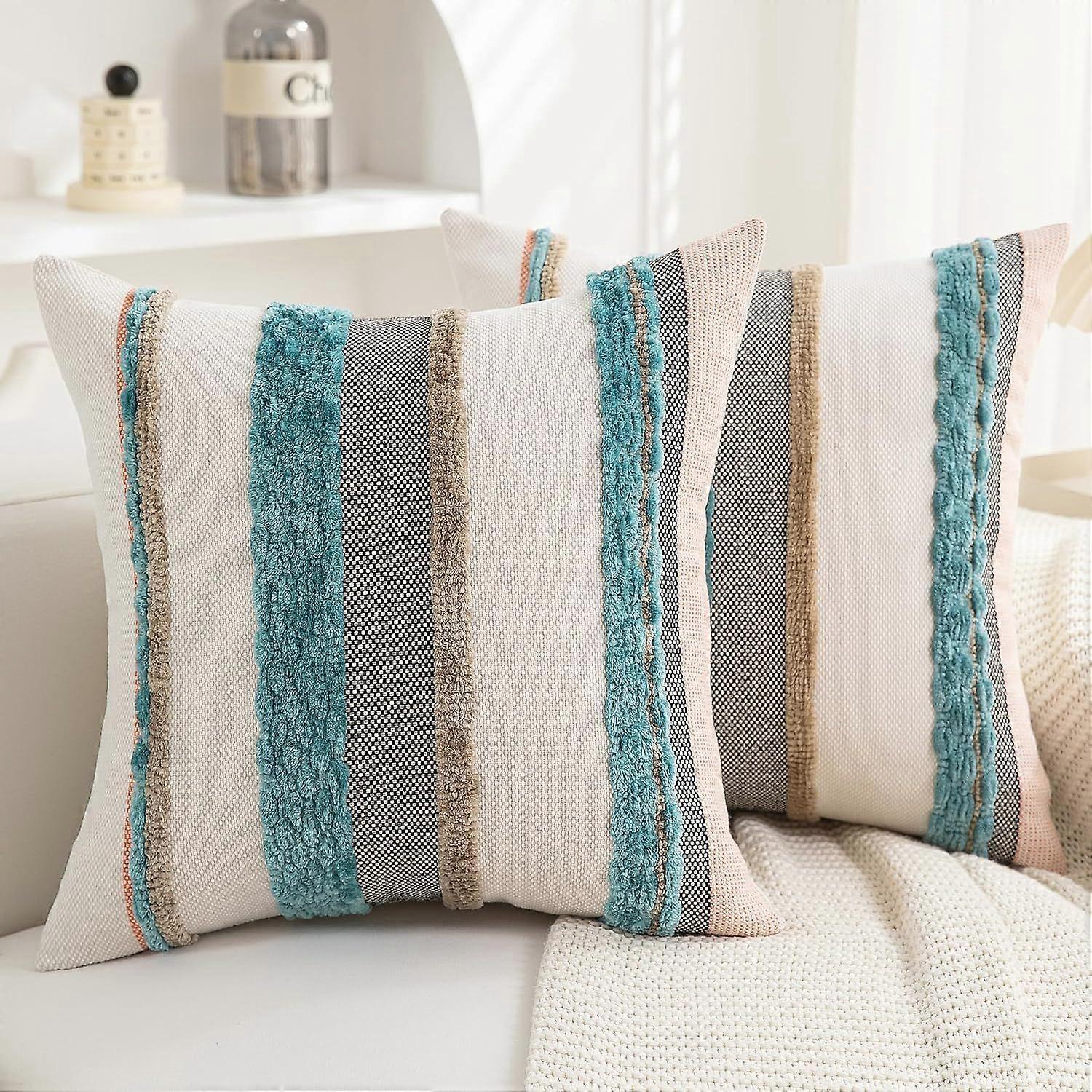 Boho Pillow Covers 18x18 Set of 2 for CouchModern Farmhouse Sofa Decorative Teal