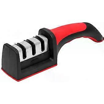 Messerschärfer 3-Stufen-Schleifstein aus Metall/ABS-Kunststoff schwarz/rot/silber 21,5 x 5 x 6,5 cm