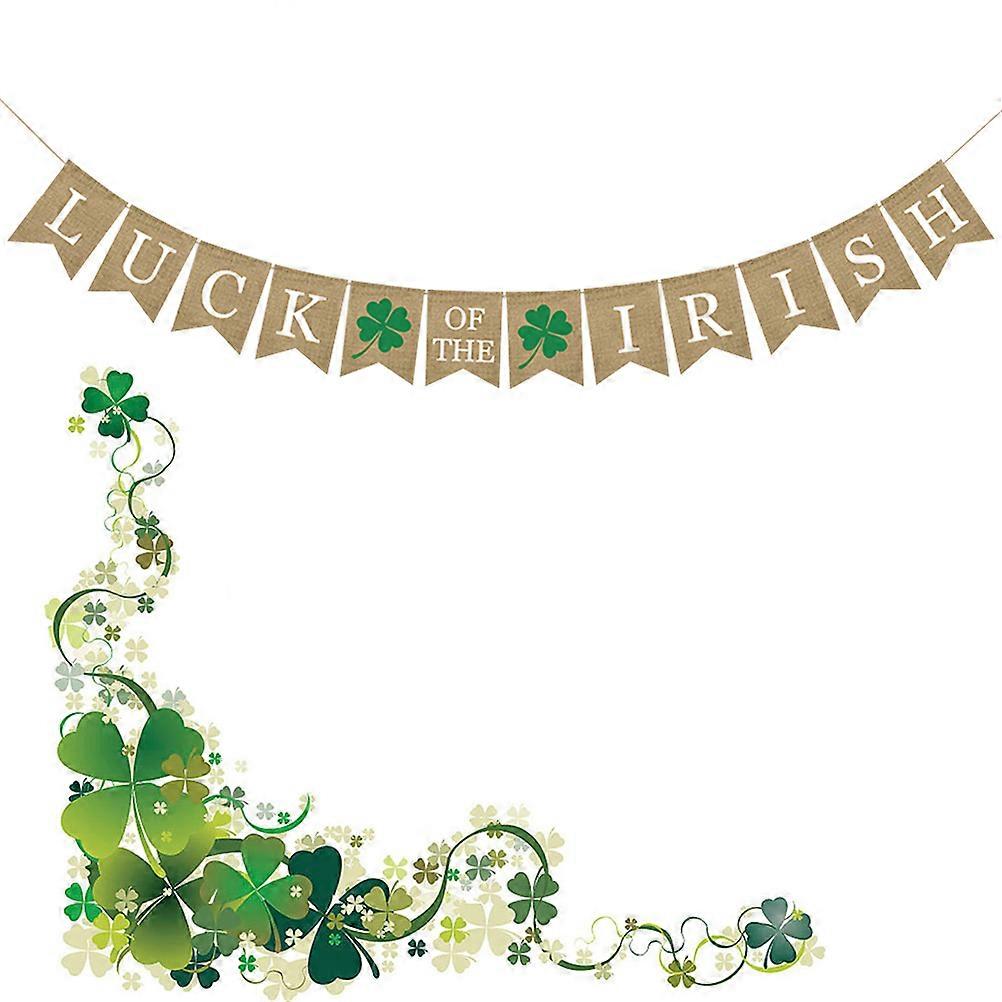 Burlap Banner with Fourleaf Clover Patterns for St Patrick Day Decor Multi Color 2 5 Meters