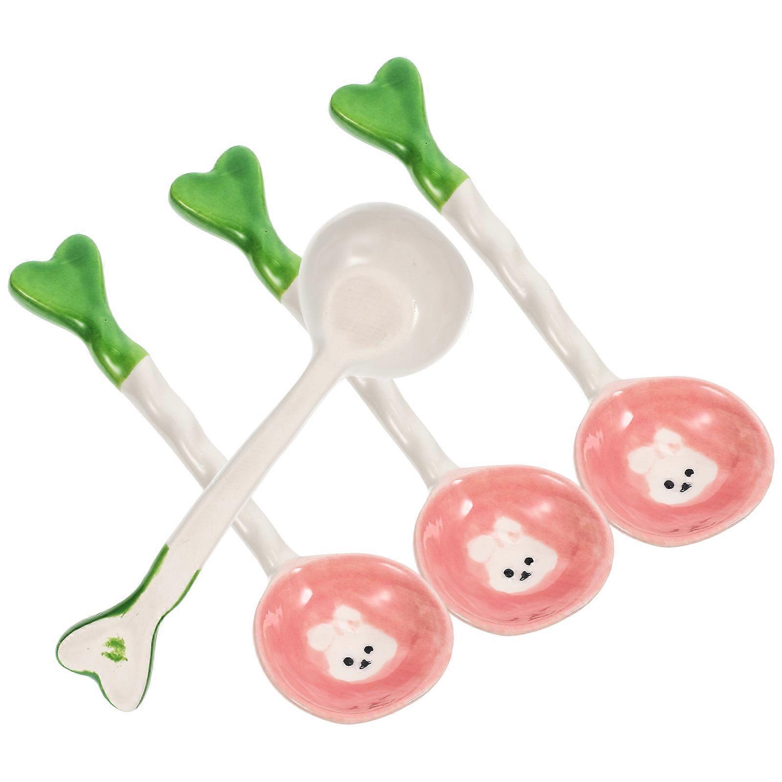 Ceramic Spoon 16 Pcs Hand Painted Rabbit Pattern Kitchenware Long Handle Multi Color Scooping Soup