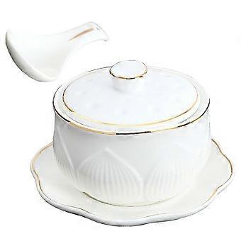 Ceramic Stew Pot with Spoon Serving Bowl Ideal for Home Use Restaurant Camping with Elegant Flower Pattern Design 1Set