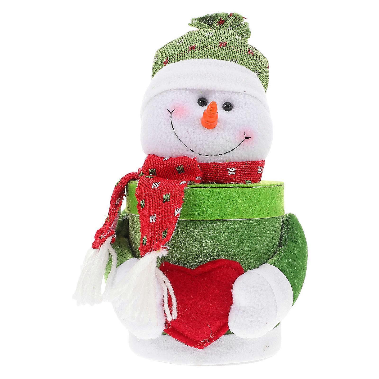 Christmas Candy Jar with Lid for Storage Festive Snowman Velour Green