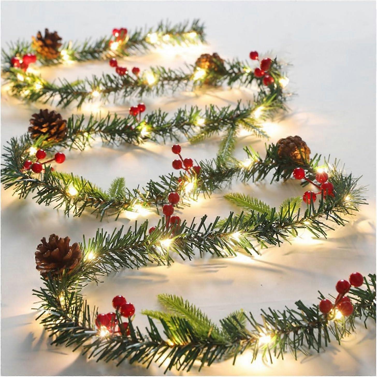 Christmas Garland with Lights, 8.5 FT Battery Operated Artificial Greenery Garland ,LEDs, Pine Cones and Red Berries(A Style)