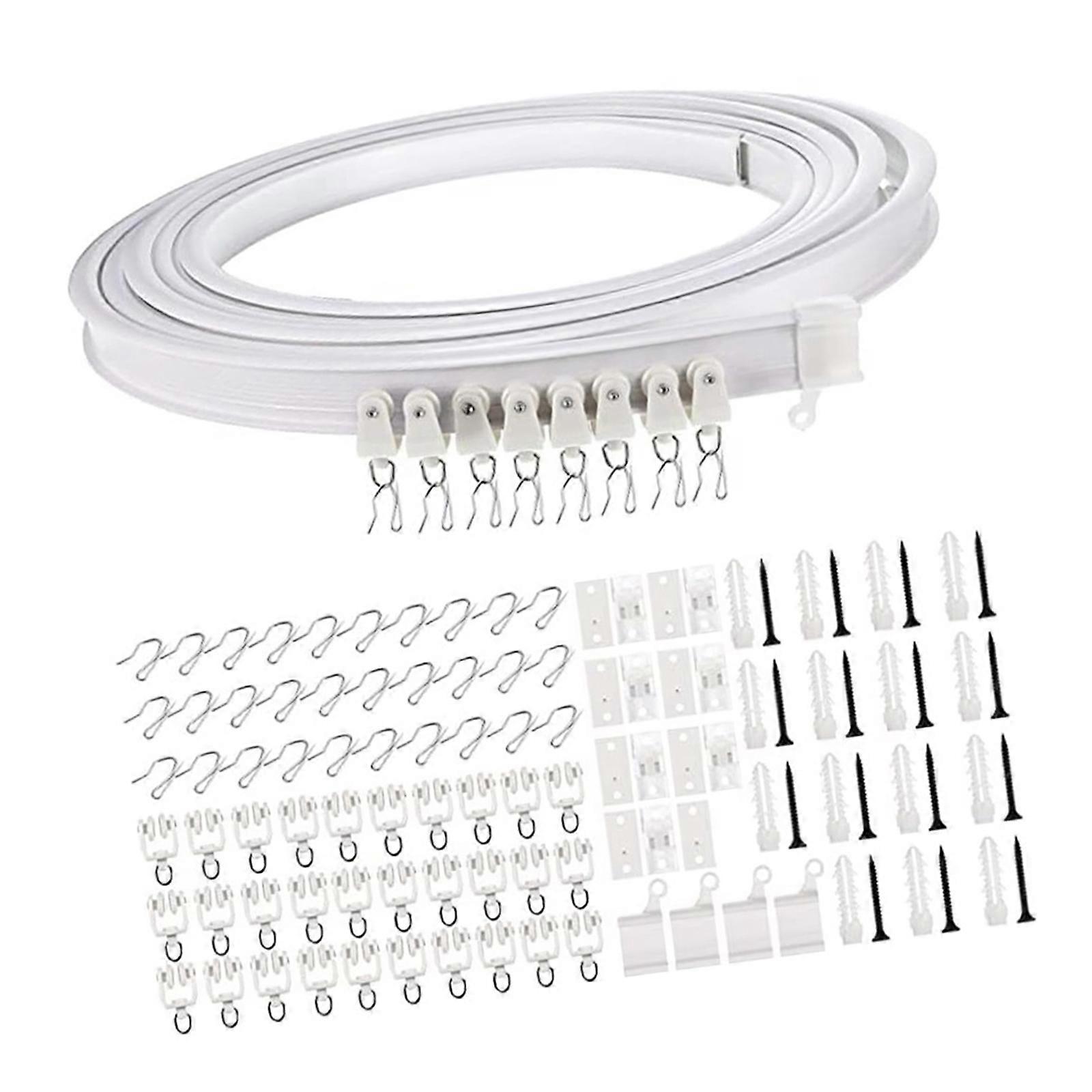 Features: Transform your living space with the Ceiling Curved Curtain Track Kits, a multifunctional solution for hanging curtains effortlessly and enhancing room aesthetic. Crafts from quality component, this curtain track kits features a flexible designs that bend fit any window shape, pair with smooth glides rollers for easy operate. Great for homeowner, interior decorators, and craft enthusiasts look to create a customized look with their window treatments in residential or commercial setting. Whether its for a bay window in the bedroom, a drop ceiling in office, or a shower curtain in the bathroom, this ceiling mounted track offer a functional approach to privacy and styles. The completing kits includes everything need for a quick installation, ensuring a seamlessly and elegant finish that complements any room decors, making it great for those seek a qualities curtain hanging solution. Specifications: Compoment: Metal and Plastic Color: White Size: As pictures shown. Flexible Curtain Track Length: 5meter/196.85in Quantity: 1 set Package Includes: 1pc 5meter flexible curtain track and 30pcs track rollers and 30pcs curtain hook and 15pcs mounting brackets and 15pcs harware set(screws and anchcors) and 4pcs end covers note: Please allow 1-2cm errors due to manual measurement,plese make sures that you not mind before you order. Due to the differences between different monitors, the picture may not reflect the actual color the item.
