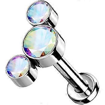 - 16-18GA G23 Implantatqualität Titan gewindeloser Push-In Dreifach-Rund-CZ-Kristall