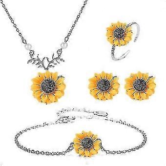 4 Stücke Sonnenblume Anhänger Halskette Baume Ohrringe Schmuck Accessoires für Frauen Mädchen