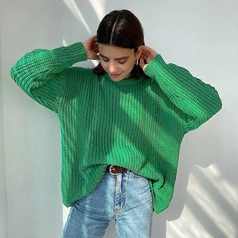 Women's Autumn and Winter Loose Round Neck Solid Colour Long Sleeve Knitted Sweater