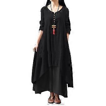 Damen Plus Size Oversized Langarm-Maxikleid mit lockerer Passform und mehrlagigem Layering