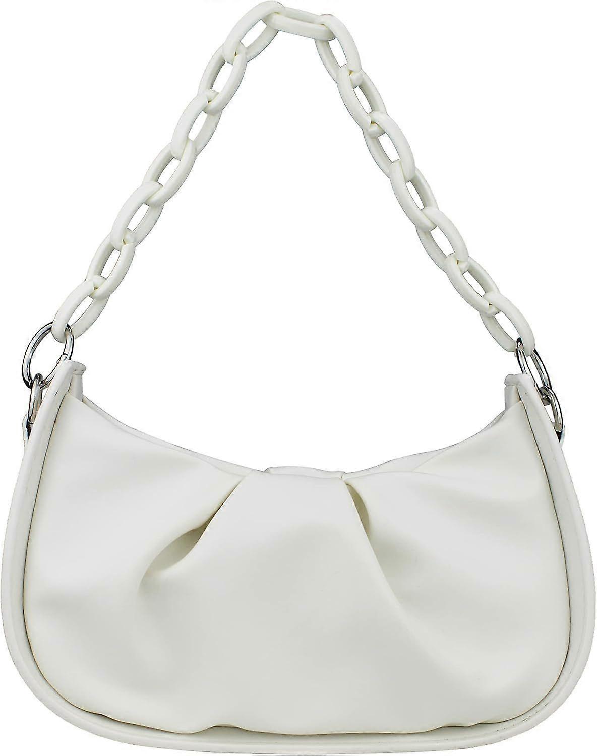 Women's Handbag Small White Mini Shoulder Bag with Pearl Chain White Crossbody