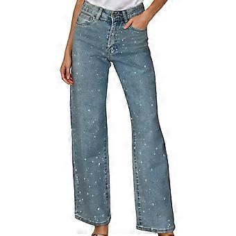 Women Jeans High Waisted Jeans for Women Wide Leg Classic Rhinestone Design Denim Pants for Women Womens Light Blue Jeans Women Clothes