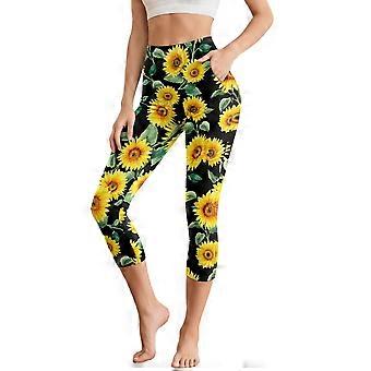 Sunflower Printed Yoga Leggings for Women Breathable Capri Leggings Athletic Workout Pants High Waisted Yoga Capris with Pockets, 3XL