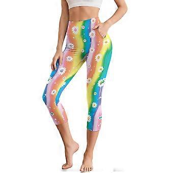 Daisy Rainbow Printed Yoga Pants for Women High Waisted Capri Leggings Breathable Workout Leggings for Sports, 2XL