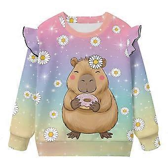 Sweatshirt for Girls Ruffle Shoulder Long Sleeve Crew Neck Cute Daisy Dolphin Pullover Sweater Tops Soft and Comfortable Pullover Top Size 4-5