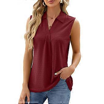 Frauen Umlegekragen ärmelloses Hemd V-Ausschnitt Reine Farbe locker sitzendes lässiges Tanktop für den täglichen Gebrauch