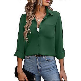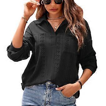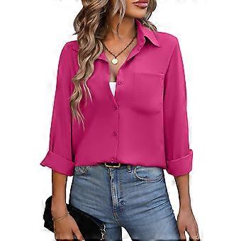 Frauen Button-Up-Hemd Umlegekragen V-Ausschnitt Einfarbiges langärmeliges Hemd-Oberteil mit Knopfleiste
