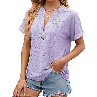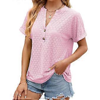 V-Ausschnitt hohle Kurzarmbluse Solide locker geschnittene Frauen Hoodie Kurzarmbluse für den Alltag