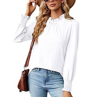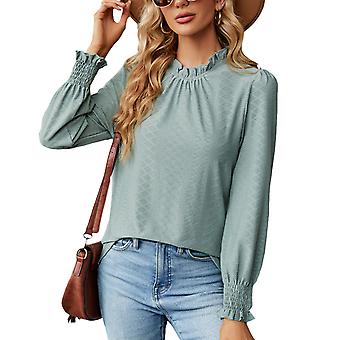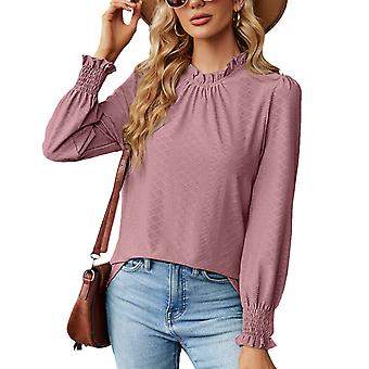 Langarm-Jacquard-Oberteil für Damen, einfarbig, Rüschenkragen, geraffte Manschetten, Schlüsselloch-Rücken, Hemdbluse fürs Büro