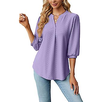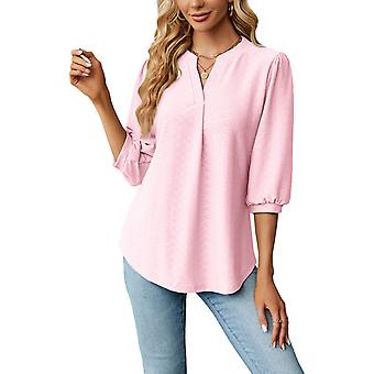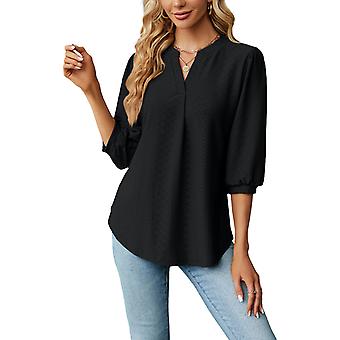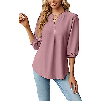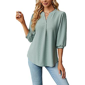 Damenbluse, einfarbig, V-Ausschnitt, 3/4-Ärmel, bequemes Damenhemd für Zuhause und unterwegs