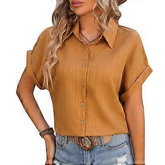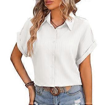 Damen Kurze Fledermausärmel Hemd Umlegekragen Streifen Jacquard Knopfleiste Casual Locker Fit Blusen