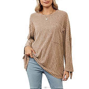 Lässiges Damen-Oberteil, langärmelig, Rundhalsausschnitt, überschnittene Schultern, lockere Passform, mit Tasche für Zuhause und Dating