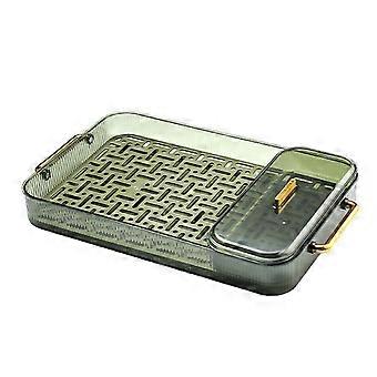 Double Layer Water Drainage Tea Tray with 2 Handle Decorative Fashionable Water Drainage Tea Serving Tray with Storage Box, Green