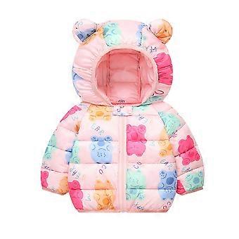 Toddler Boys Coats & Jackets Autumn Winter Padded Cartoon Print Bear Ears Hooded Long Sleeve Tops Coat Sportwear,Pink,3-4 Years