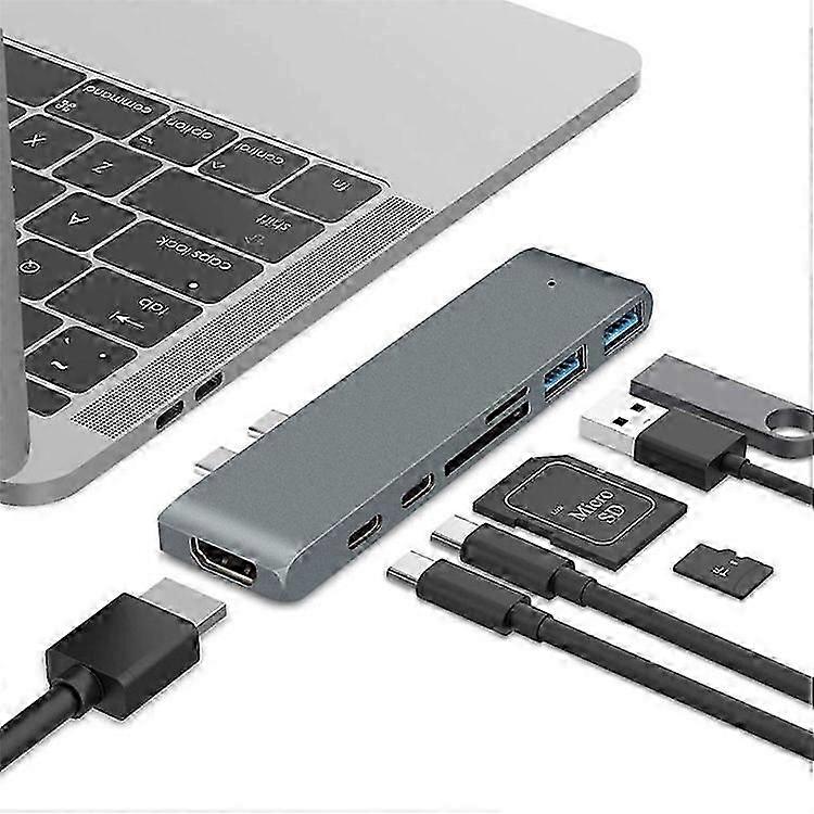 Dual USB-C Hub Type-C to Thunderbolt 3 + Type-C + 4K HDMI + USB 3.0 x 2 + SD + MicroSD Card Reader Adapter
