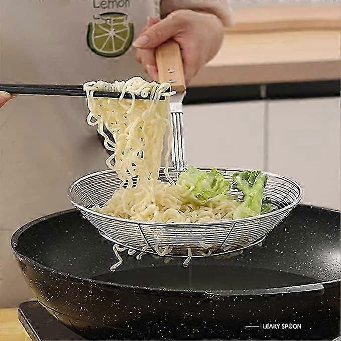 Stainless Steel Cooking Colander, Bamboo Handle, Wire Spider Strainer 2025