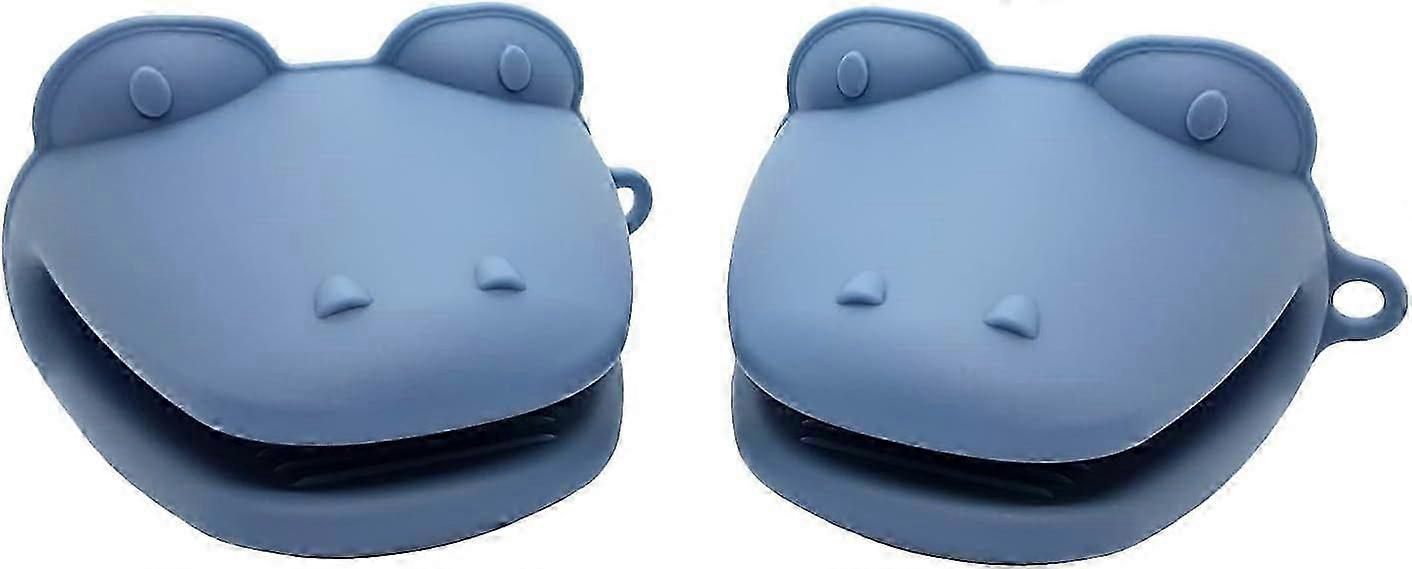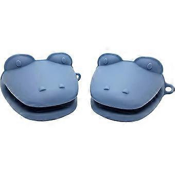 Unique Crocodile Design Silicone Mitts Potholder Heat Resistant Oven Glove Non-Slip Silicone Grip Set of 2 (Dark Blue)