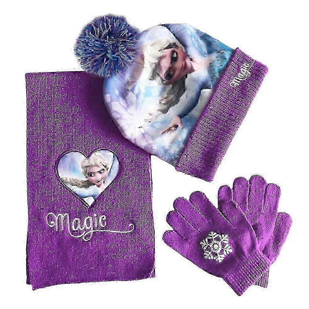 w Kids Girls Elsa Warm Cap Pom Pom Beanie Hat F Gs Set