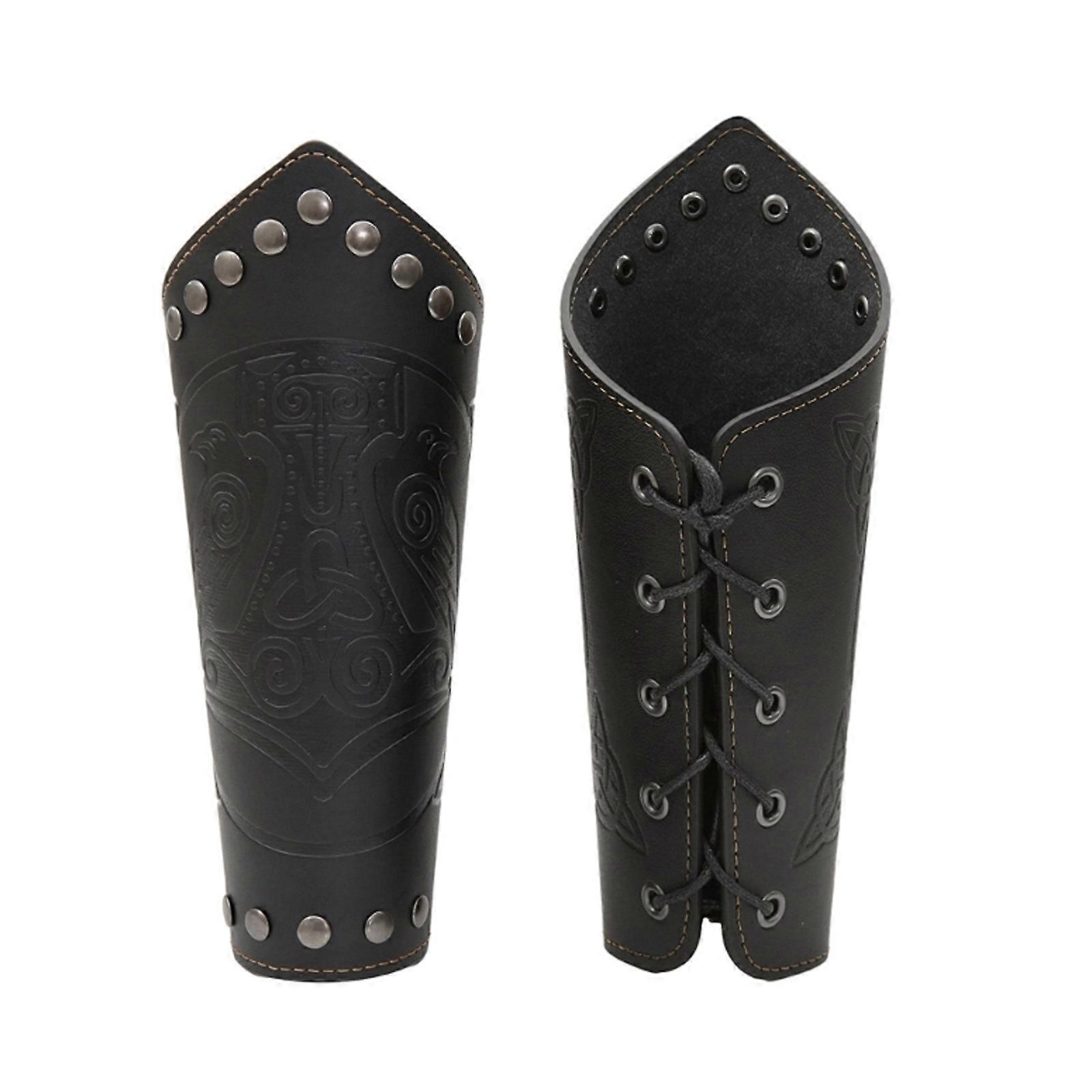 Adult Gothic Armor Wrist Bracers with Embossed Pattern Punk Warrior Renaissance Pirate Knights PU Lace Up Wristband Black A