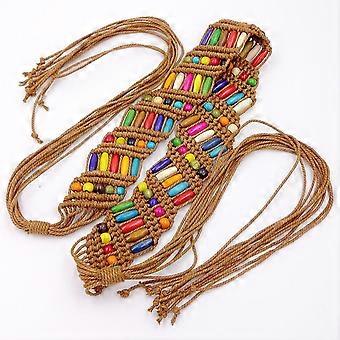 Damengürtel im Boho-Stil, Retro-Wachsseilgürtel, geflochtener Quastengürtel für Mädchen, geeignet für Kleider, 1 Stück, Braun