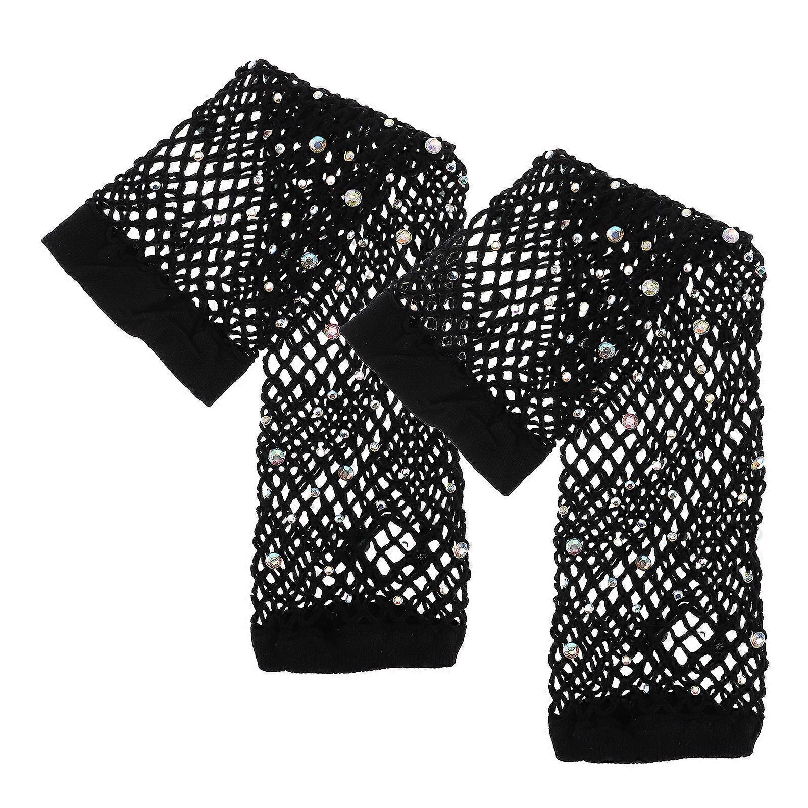 Fingerless Fishnet Gloves Rhinestone Gloves for Women 4Pairs Black Mesh