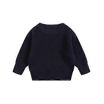 Mädchen-Strickpullover, Rundhalsausschnitt, lange Ärmel, dunkelblau, warmer Pullover für Babys, Herbstoutfit, Mädchenkleidung 3-4 Jahre