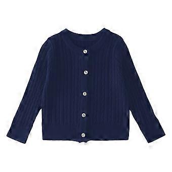 Strickpullover für Babys, langärmelig, mit Knöpfen, marineblau, warm, Herbst-Winter-Outfit für Mädchen (11-12 Jahre).