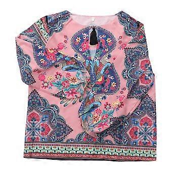 Women Short Sleeve Tops Pink Fashion Blouse Office Wear Long Sleeve Chiffon Blouse Lady XXL 1Set